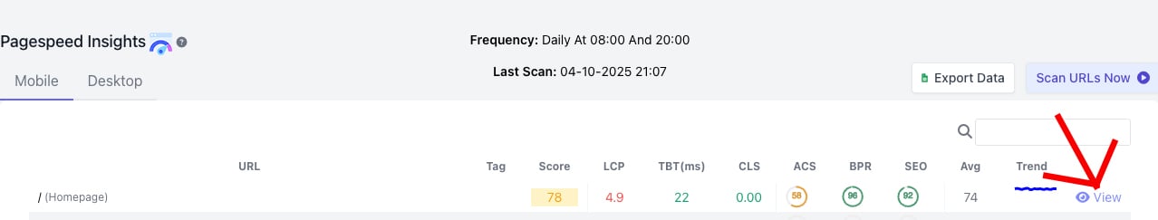Automated monitoring systems like PageSpeed Plus provide ongoing LCP visibility across user conditions and device types. It tracks LCP scores on mobile and desktop so you can see real time and historical scores.
