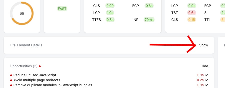 A: PageSpeed Insights doesn’t show the LCP element. That’s why we added the feature to PageSpeed Plus