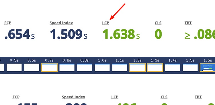 In the case of our website homepage, the LCP element is identified as the laptop image that appears under the title: