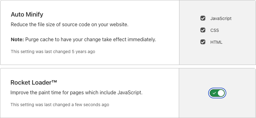 If you really need to use JavaScript then make sure to reduce the impact by deferring the load until the LCP is finished. If some JavaScript is needed for the initial page load, then inlining it will reduce the impact. If using Cloudflare, there are several of performance settings that can optimise the delivery of JavaScript with 1 click such as these: