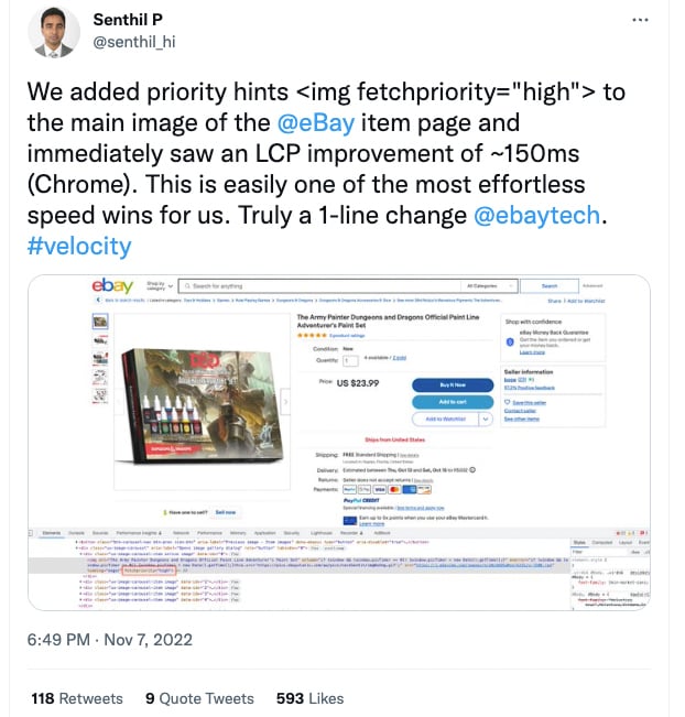 Aside from boosting the priority of important elements, Priority Hints can also be used to lower the priority of others to avoid your LCP element competing with other high priority resources. This is another useful feature that is often overlooked. An example use case would be an image carousel where the first image has significantly higher priority than the rest. In that scenario, you can prioritise the first image and deprioritize the rest.