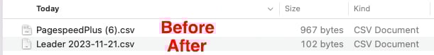 Exports of full site scans are now more appropriately named. Instead of pagespeedplus.csv, they will be called Site name - name such as LeaderInternet.com - 2023-11-20.