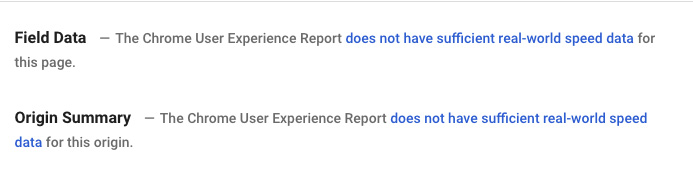 Your site may not have enough information logged in the CrUX to give any feedback here. If that’s the case you will see a message like this: