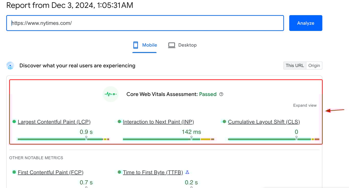 The tool incorporates Lighthouse metrics, which offer deeper insights into how a page performs in real-world conditions.