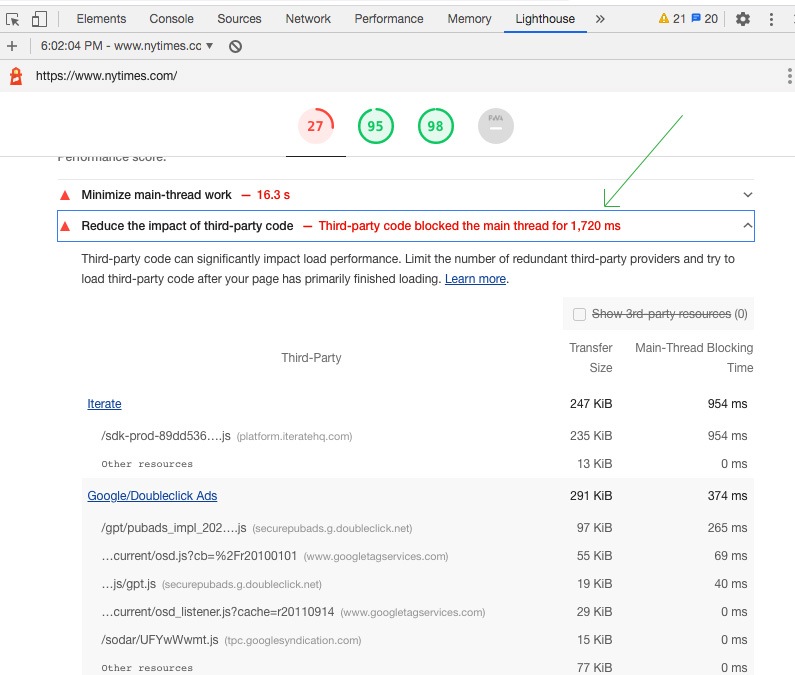 The first step in reducing the impact of third-party code is auditing the scripts on your site to see which are slow.