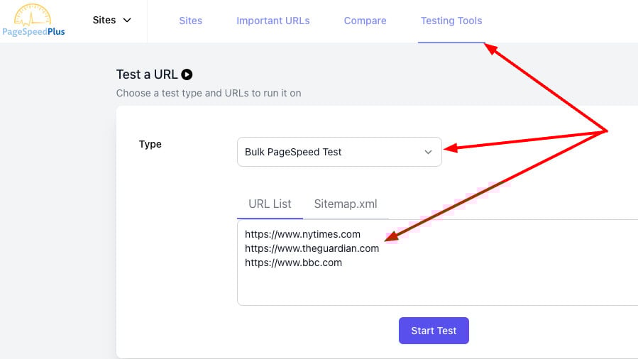 The tool on this page tests up to 10 URLs. To check more pages, sign up for a trial and then you have even more options: