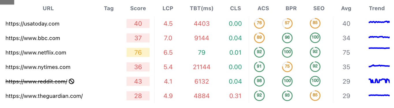 Here are some examples of some of the largest websites in the world and their loading time from 11 global locations captured by PageSpeedPlus: